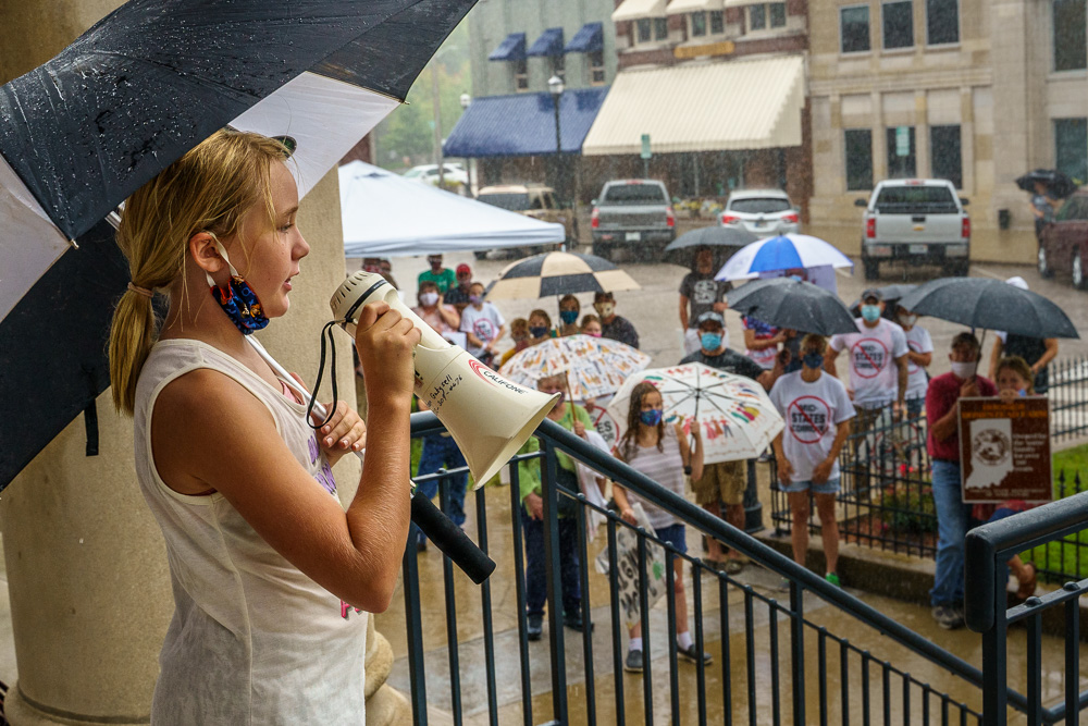 The 11-year-old didn’t hesitate to grab the megaphone when the speaker before her asked if anyone else would like to say something to the crowd.