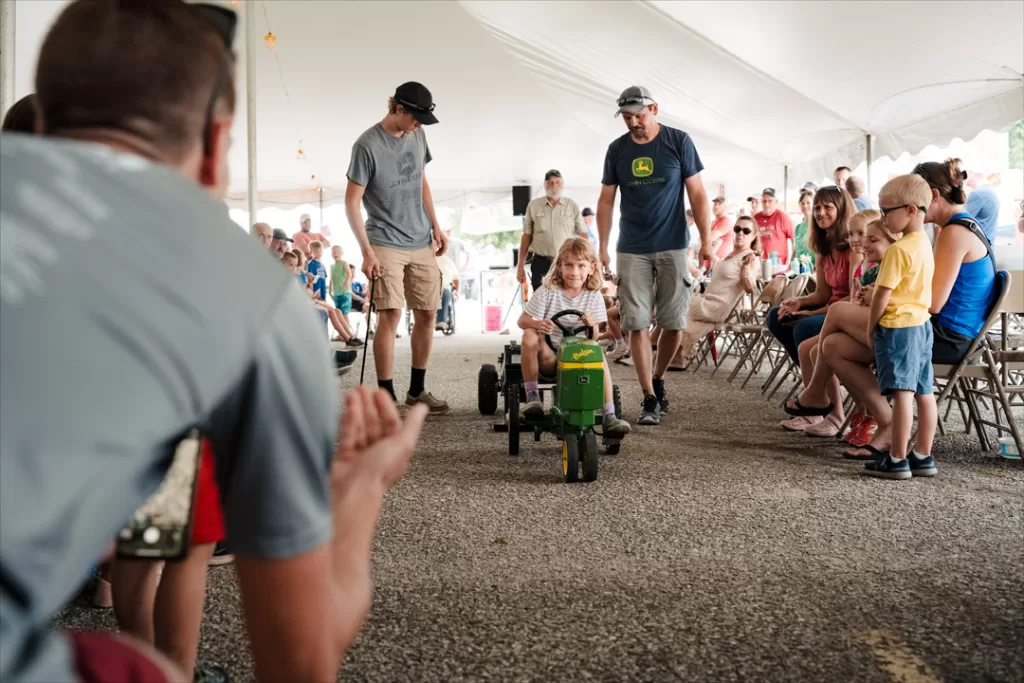 Leon Knies made an intense run at the Pedal Tractor Pull Saturday morning—photo by Matt Crane.