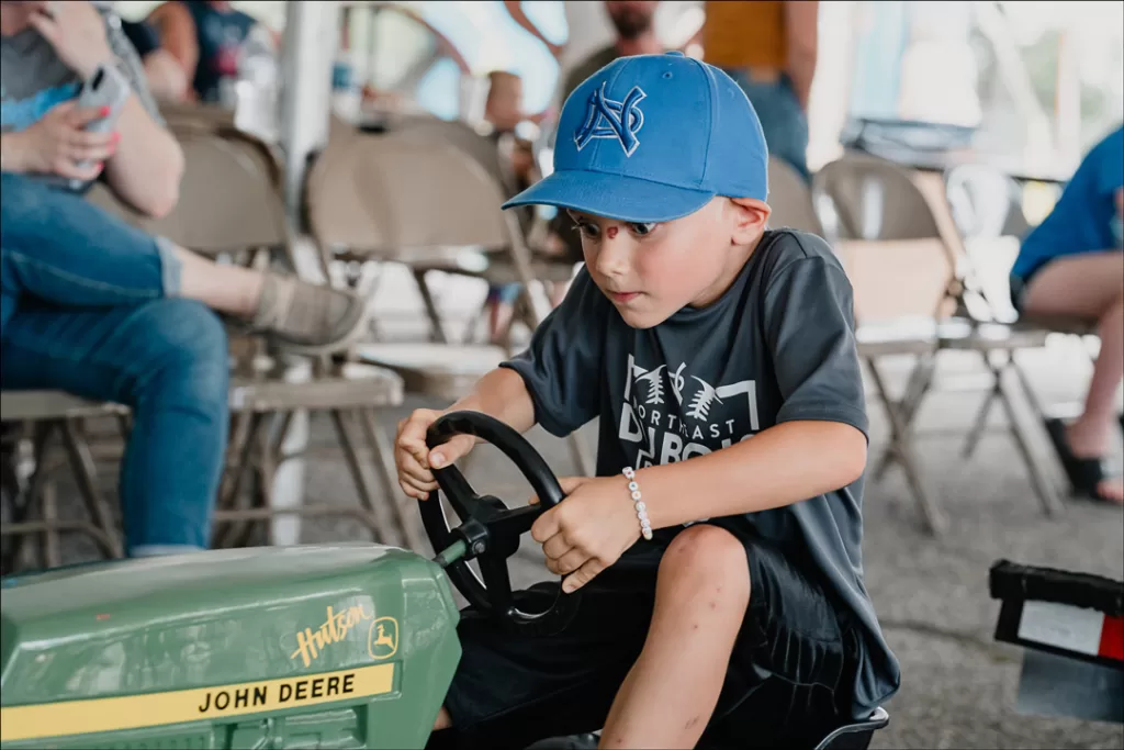 Kade Schroering, 6, woke up Saturday morning and decided to take a run in the Pedal Tractor Pull at the Celestine Streetfest, said dad, Brad Schroering—photo by Matt Crane.