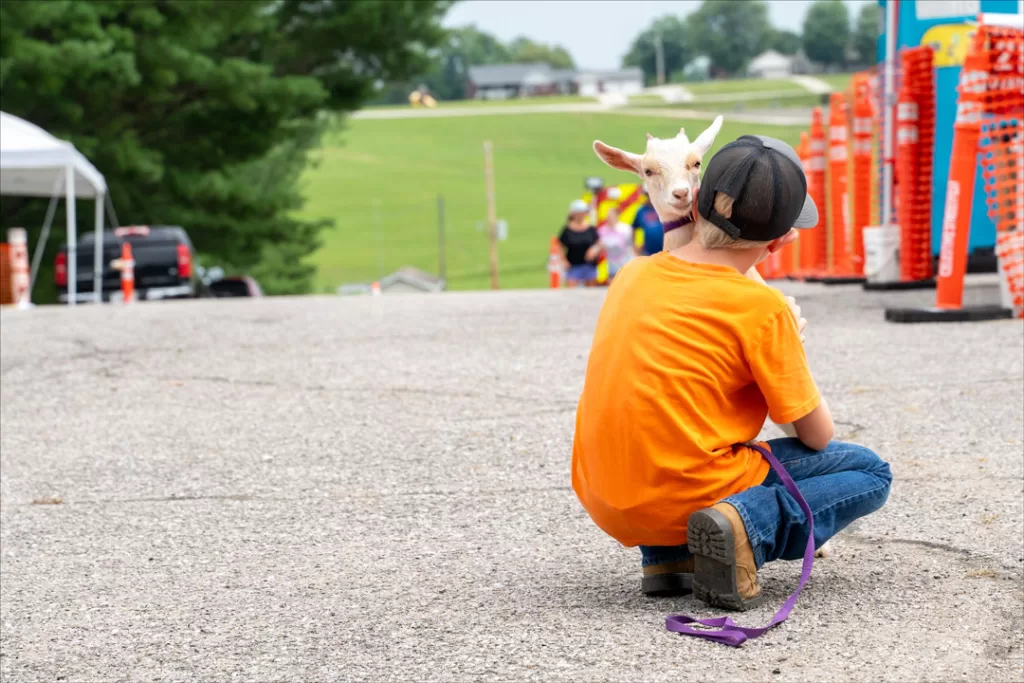 Jake Beyke, 10, and his pygmy goat, Paula, toured the Streetfest Saturday morning. Paula is two months old and participated in the Pet Parade—photo by Amy Crane.