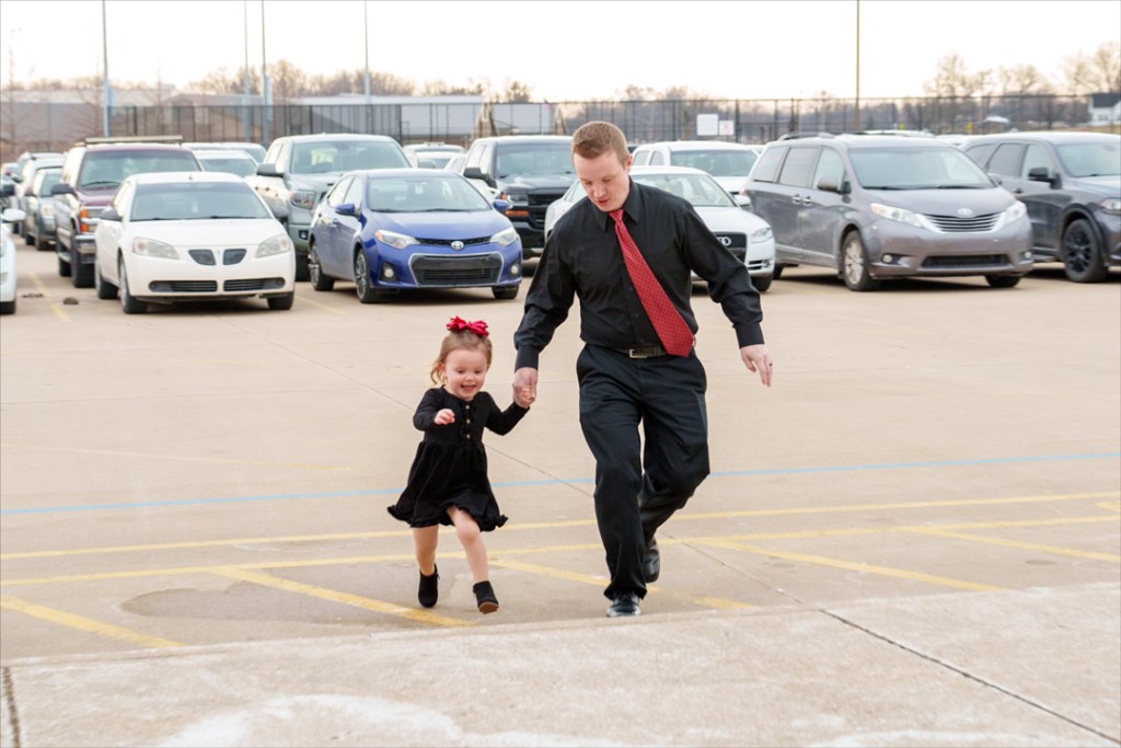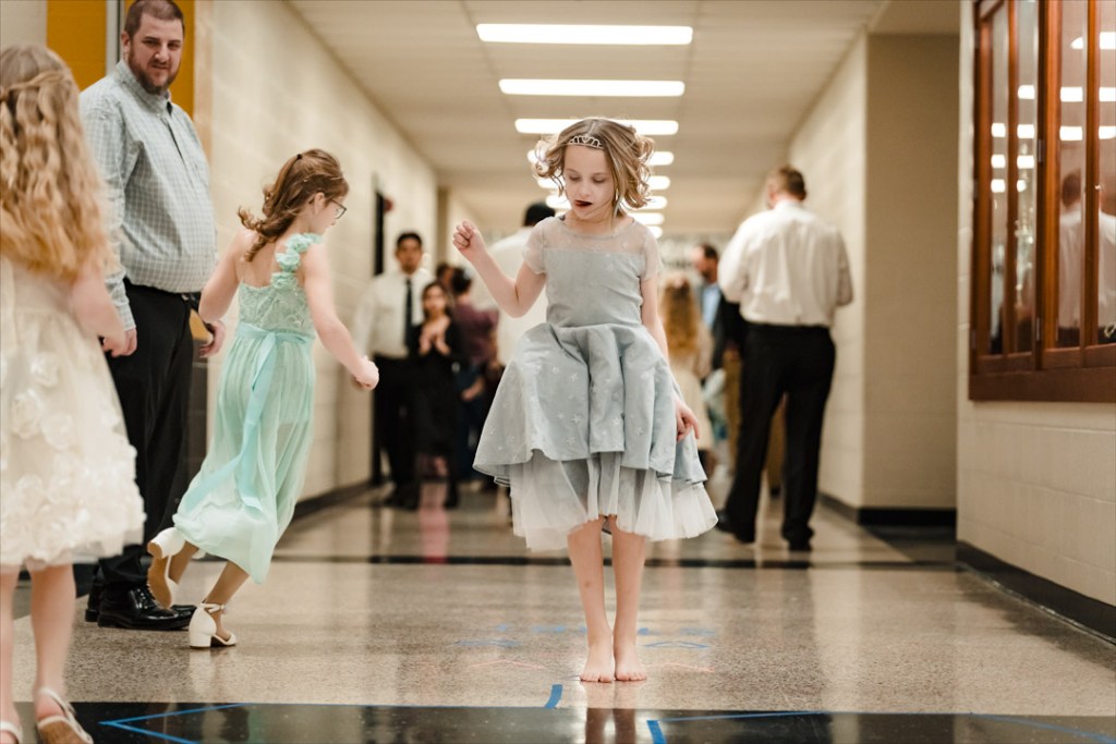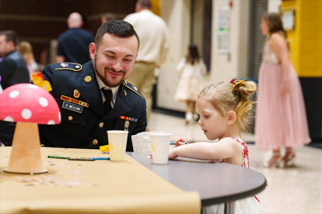Andrew Kieffner and his daughter, Cambria, 3, skip up on the curb as they head into the Daddy-Daughter Dance Saturday evening.Jesse D’Mellow and his daughter, Azshara, hang out in the Jasper Middle School cafeteria, coloring and eating some snacks.