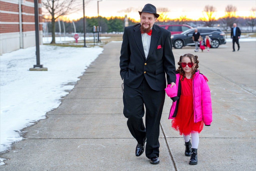 Edward and Anastasia Scarpa, Evansville, walk into the Daddy-Daughter Dance Saturday evening at the Jasper Middle School.