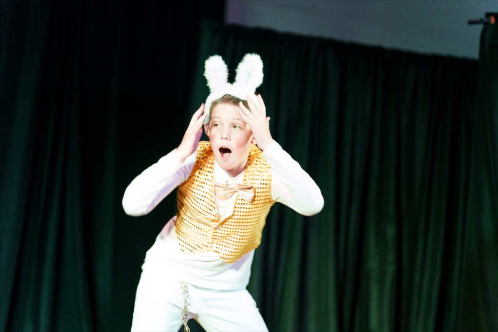 Garrett Jones plays the White Rabbit in the Holy Trinity production of Alice @ Wonderland. Photo taken April 30.