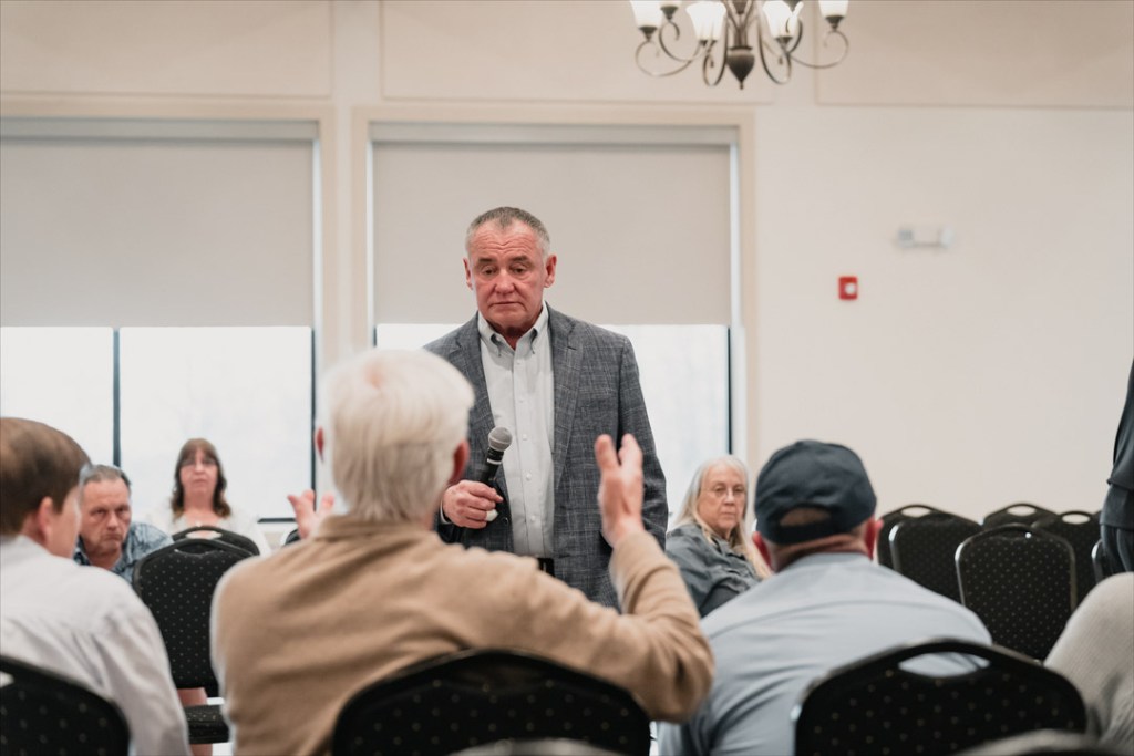 Attorney Russell Sipes answers questions during a Property Rights Alliance meeting at Klubhaus61 on April 3.
