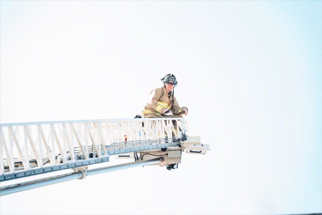 Jasper Fire Fighter Brad Hochgesang watched for hotspots as crews battled a house fire on 13th Street in Jasper on Sunday, April 13.
