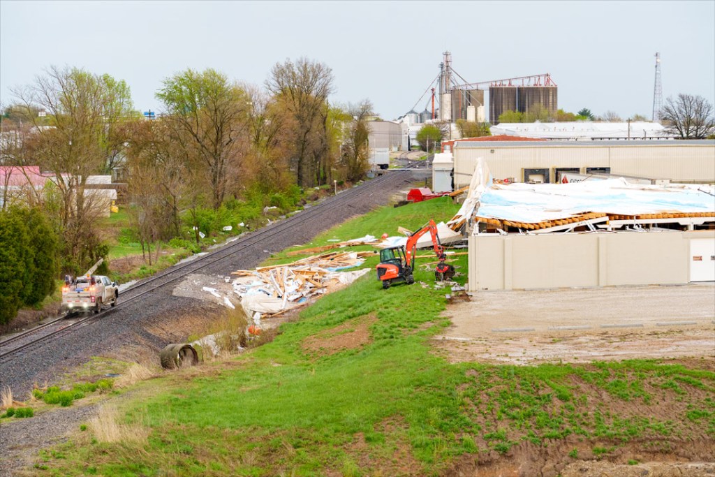 Clean up began the evening of April 10 after a fast-moving storm with high winds damaged OFS Plant 5 and the Human Resources Offices.