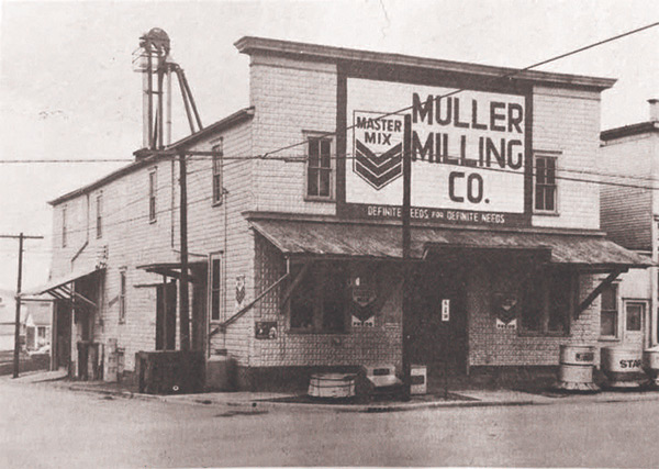The Muller family has been in business in Ferdinand since 1842, when Peter Mueller, Sr. (the extra ‘e’ would later be dropped) purchased a horse-powered mill. Eventually, the Muller Milling Company would be located on 5th Street, next to Vaal’s Furniture and Appliance. (The building would be lost to fire in the late 70s.)