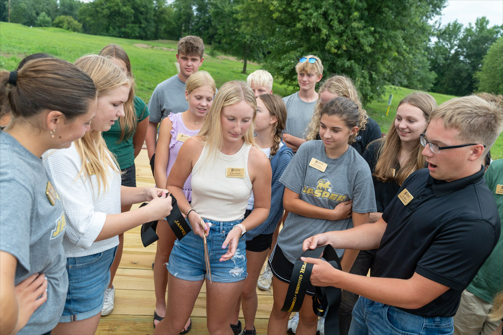First, the groups ceremoniously split the ribbon at the entrance to the renovated former golf course property to celebrate the expansion of disc golf into the City of Jasper with an 18-basket course designed by Eric McCabe, a well-known course designer.
