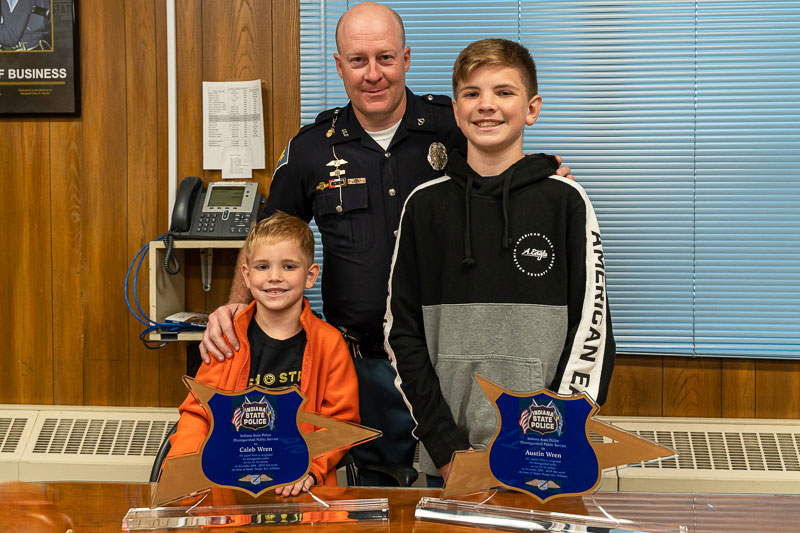 During the presentation, Post Commander Jason Allen commended the two boys and told them they had a bright future ahead of them. “If you want to join the Indiana State Police, get in touch with me,” he said.
