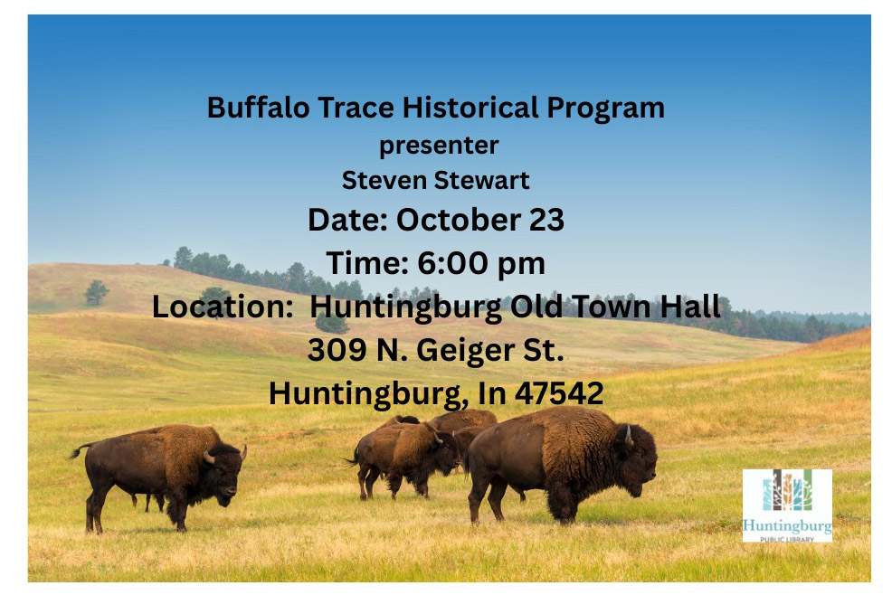 The Huntingburg Public Library is hosting Steven Stewert on Thursday, October 23, 2025, at 6 p.m. for a special presentation on the Buffalo Trace Program. The event is at the Huntingburg Old Town Hall.