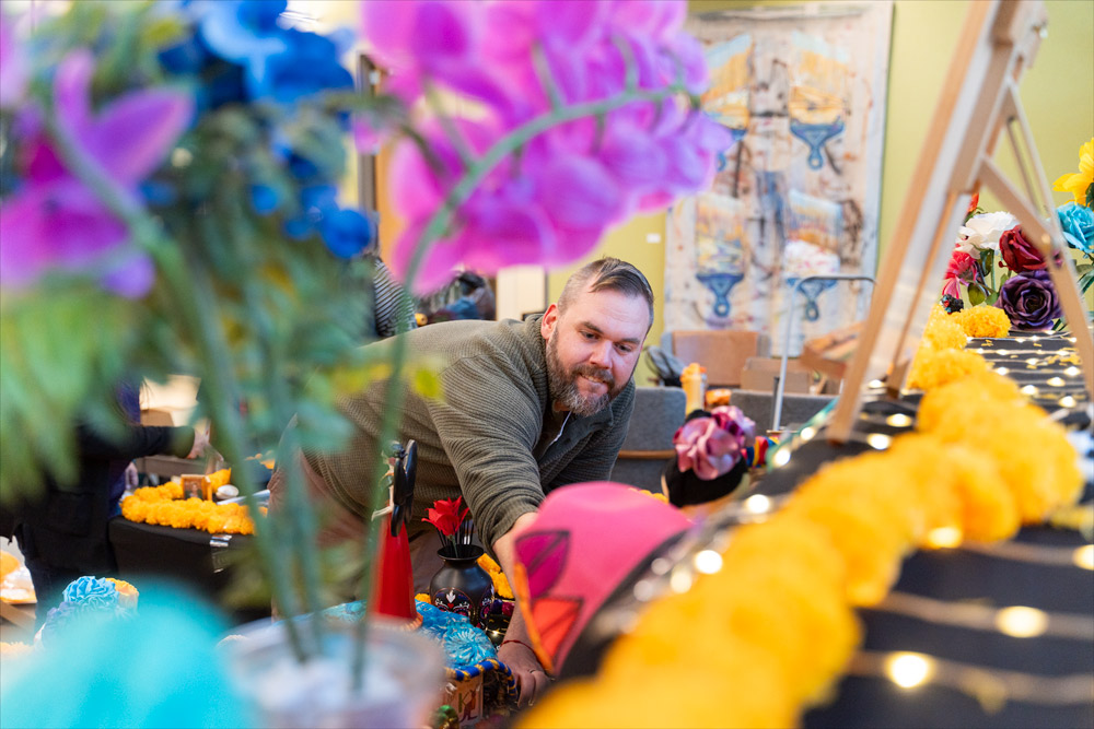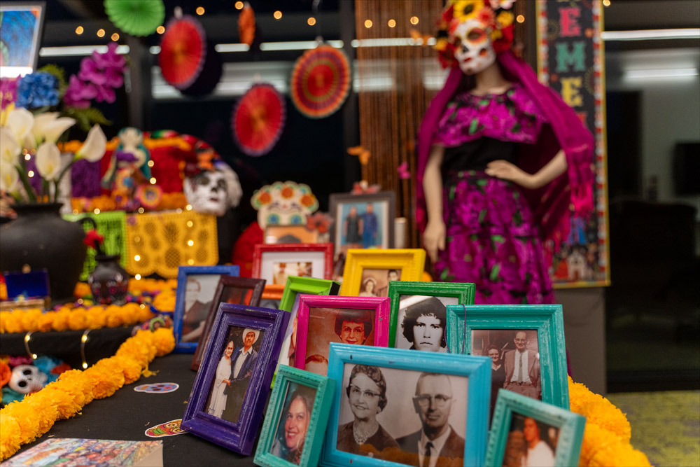 The public is invited to add their own mementos or framed images to the public altar on display at the Thyen-Clark Cultural Center, as well as visit the layered and symbolic altar.