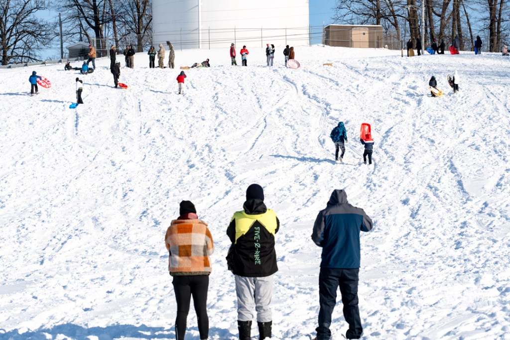 NEWS | photo Cold hard fun in Huntingburg ByMatthew Crane January 27, 2026January 27, 2026 Reading Time: 2 minutes Leo Kuczynski, 9, and Leo Hildenbrand, 9, yelled as their sled hit a ramp on Huntingburg’s standpipe hill Monday afternoon. A sledder takes off after hitting the ramp. Lucy Kuczynski, 8, builds a snow fort at the base of Standpipe Hill. A sledder takes a moment to recover after a wipeout. Paxton Reece pushes a trio down the hill in a modified “sled”. Yeehaw! Oof. The hill was popular all day with sledders passing each other as they arrived and headed out for warmth. Share