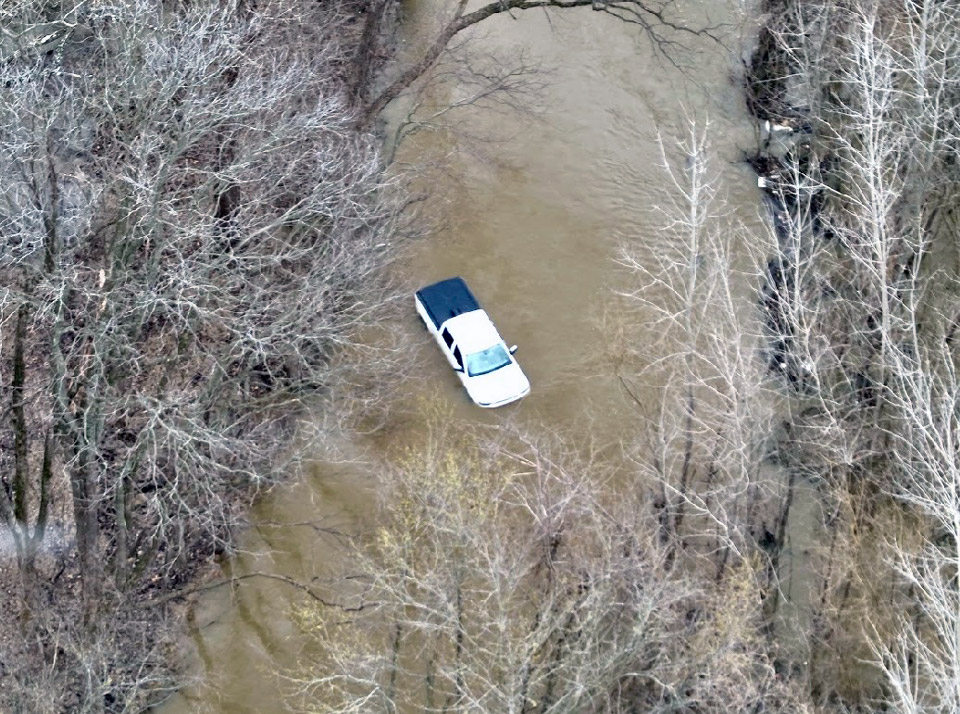 At 12:25 p.m., Pike County Dispatch received a call for help from a person who reported they were stuck in floodwater and that the water had reached the door handles. The subjects were wet, but able to move to the top of the truck in the freezing temperatures.