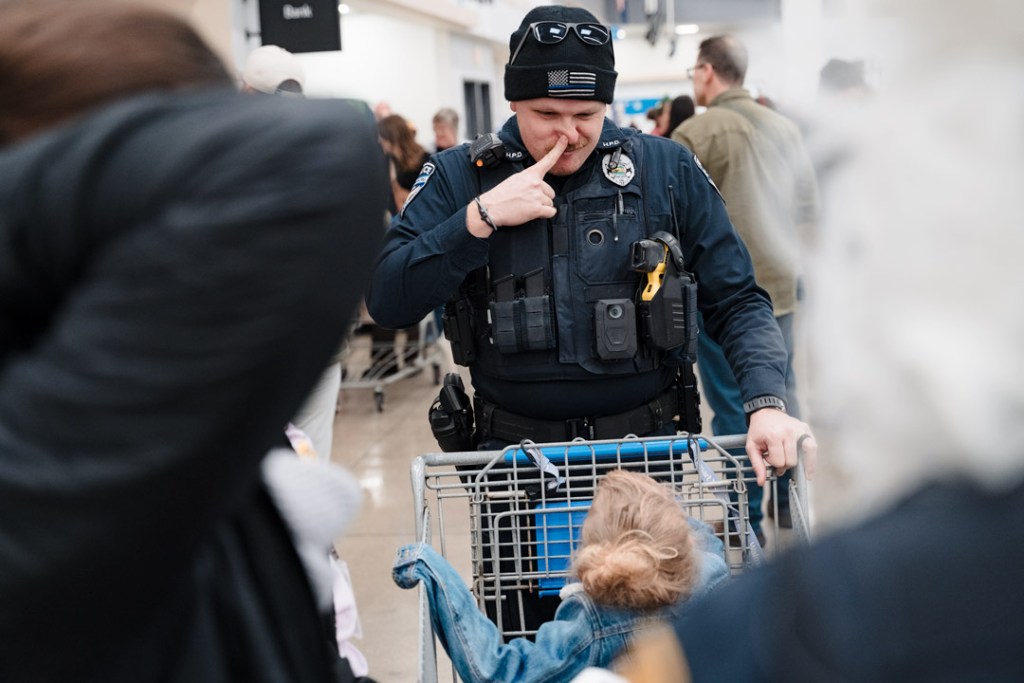But there were plenty of smiles as local law enforcement officers and agency partners took their shoppers for a spin through some needed items, like clothing, jackets, and shoes, before heading over to the toy aisle.
