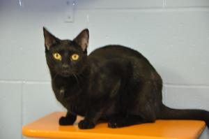 Jet is an adult male black cat with a little patch of white on his chest. He is very friendly and loves people. He would make a wonderful family pet.