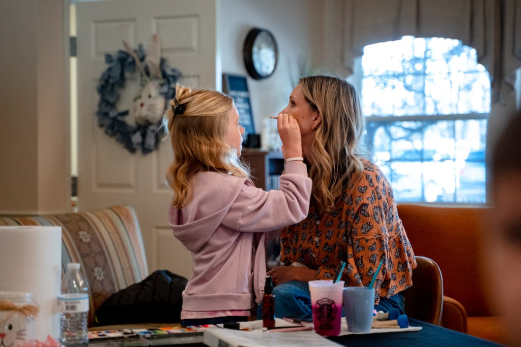 Rozzi Taylor, 9, practiced face painting on her mom, Tessa, before the families stopped by. The pair were raising money for alzheimer’s research — Photo by Amy Crane.