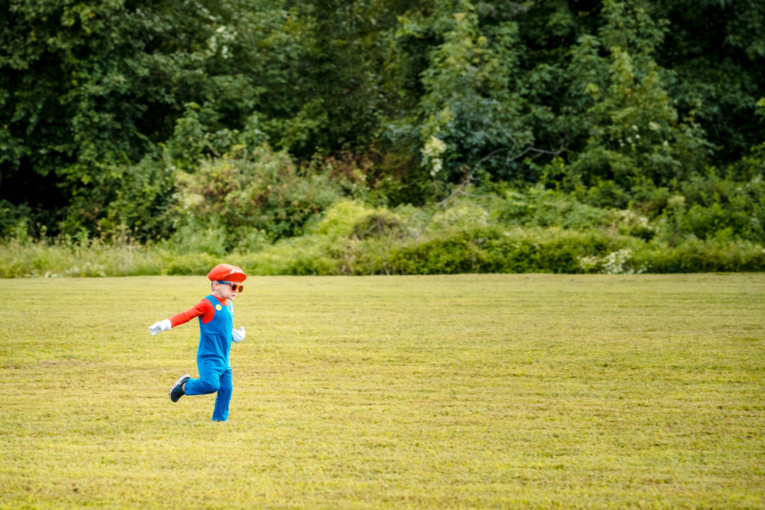 Two-and-a-half-year-old Hudson Poole took his Mario costume for a spin on Buehler Park’s soccer field with his dad, while his mom and brother played pickleball nearby. Dad said the Halloween costume had arrived in the mail that day, and, of course, Hudson had to put it on–Photo by Matt Crane.