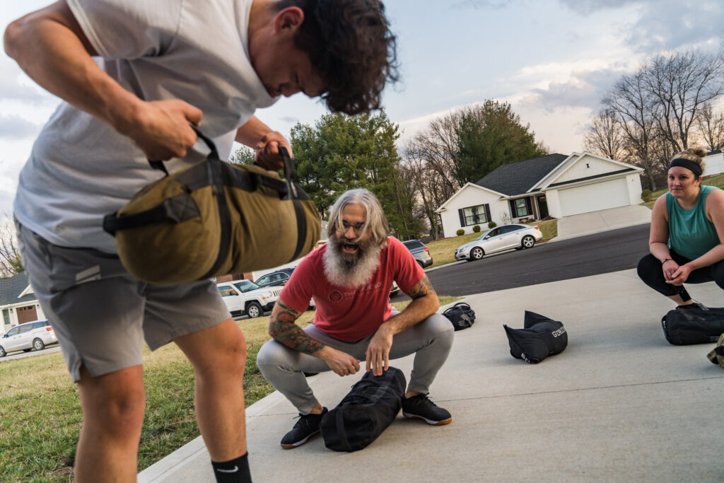 Weekly on Tuesdays and Thursdays, the group spills into the cul-de-sac, heaving, pushing and running for about 40 minutes. Saturdays, after the ruck, the group gathers in Southern Indiana Complete Fitness — a space that has been donated for SoberDuco’s use.