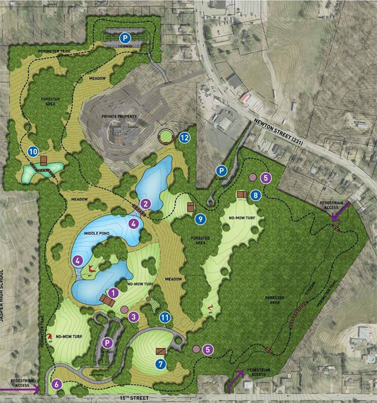 Park board president Roger Seger gave an update on the project to develop The Parklands into a multi-use park that includes trails, playgrounds, shelter houses and ponds. A schematic design for the park was provided in January including a $4 million price tag to complete the majority of the plan. The park board has spent about $60,000 of the $300,000 appropriated in the 2016 budget on that design for the park. Those plans can be viewed here.