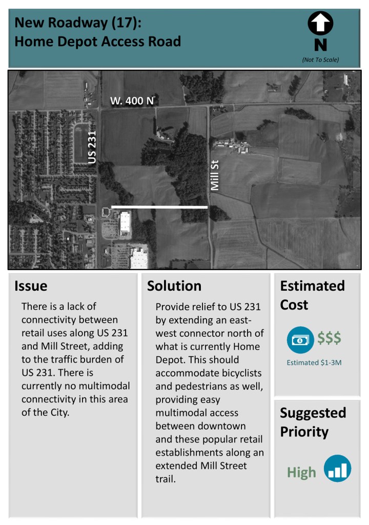 A critical component of any future development involves constructing an access road connecting the property to U.S. 231 or Mill Street. The road has been identified as a high-priority project since 2001 to address transportation issues and unlock the area’s development potential, according to City Attorney Renee Kabrick.
