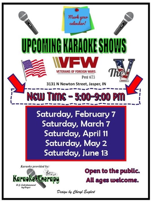 Additionally, VFW Post 673 will be OPEN TO THE PUBLIC on January 16, 2:00 to 8:00 p.m., with live music featuring old school country and classic rock by Mama Tried from 6:30 to 9:30. p.m.