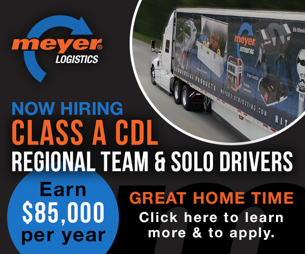 Employment Meyer Logistics seeking Class A CDL Regional Team and Solo Drivers ByAmy Crane April 21, 2026April 22, 2026 Reading Time: 1 minute Learn more and apply. Share
