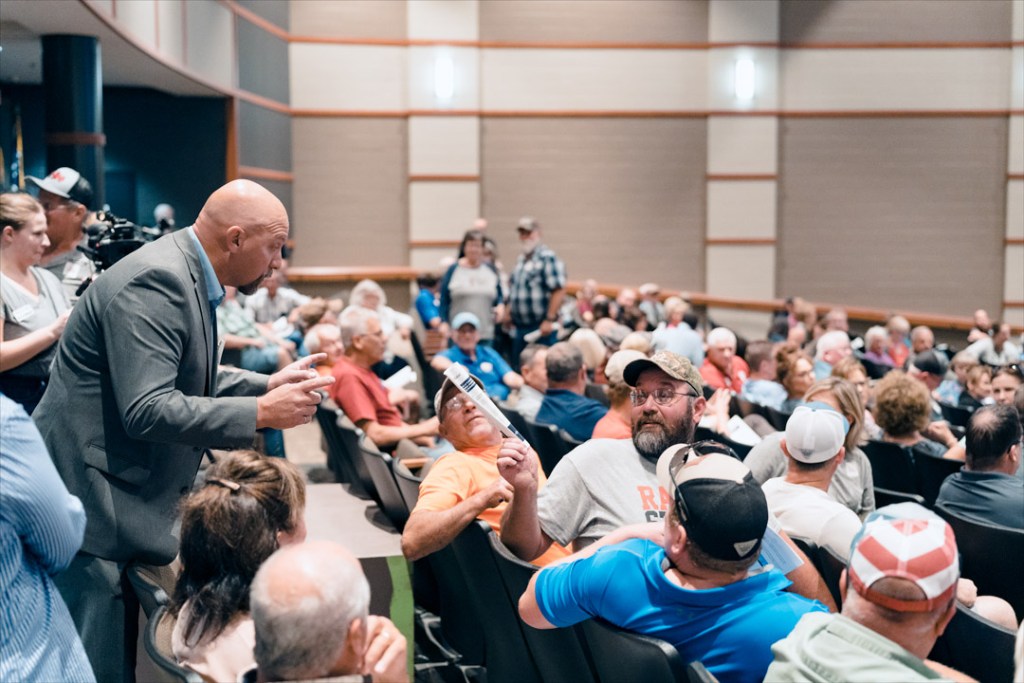 Speaking to the frustration in the auditorium when attendees learned they would be taking questions, Minton said those types of meetings can be counterproductive.