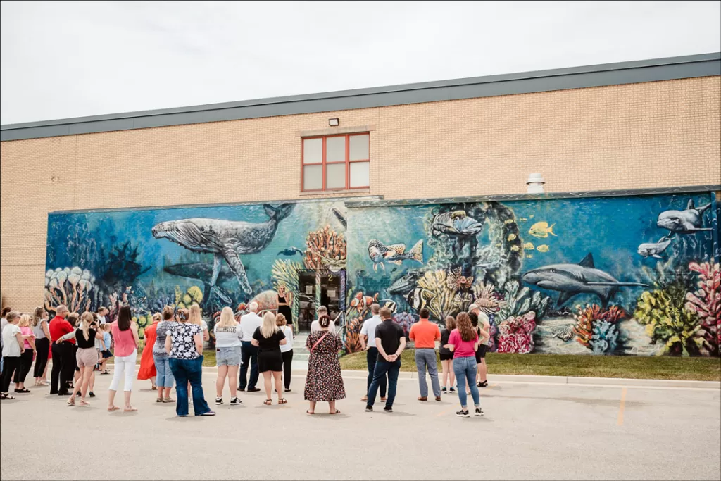 Lampert noted that the mural had already helped her in one such investigation. “I had a kiddo the other day and he told me that he liked to look at creatures, to study them,” she said. “He said, ‘I like to look at sea creatures. Your painting out there is so cool.'”