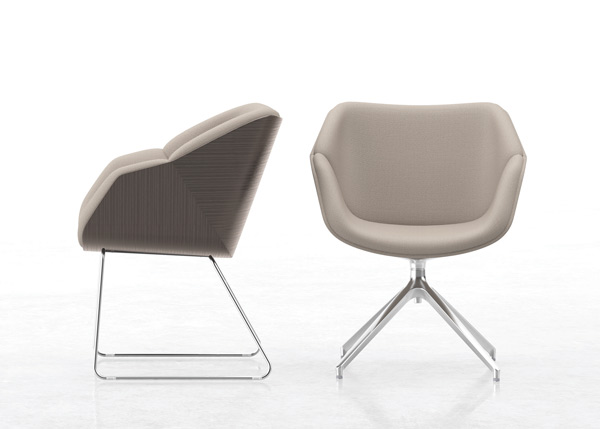 Mabel is a contemporary family of seating that offers low, mid, and high back shapes and three distinct base styles. The curved seat provides a low profile sit that encases guests in comfort and provides solutions to accommodate private offices, open plan spaces, meeting areas, and welcoming spaces.