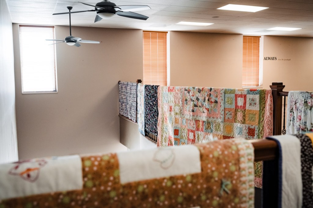But the quilt was her first and the one she grew up with. “An anonymous person made me a quilt,” Jen said. “My mom and dad always taught us to serve people, but this (she touches the quilt) is where my love of making quilts for other people began.”