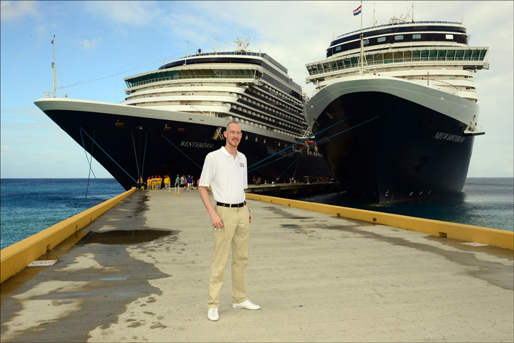 He saw that cruise lines were doing well, so he applied for a photography job with Holland American. That led to a stint in the Caribbean, then a transfer to a ship in the Mediterranean. There he met Melissa Pleiss from Indiana.
