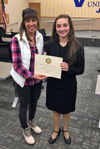 Melanie will represent the Rotary Club of Jasper at the District Rotary contest to be held in Bedford, Indiana on March 4, 2017.