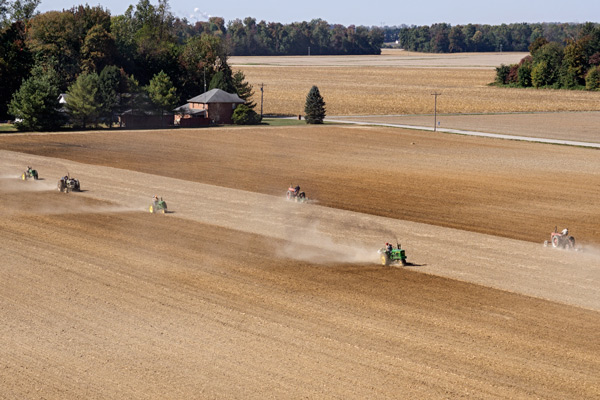 So, for about 3 hours, about 40 tractors and hundreds of farmers showed up at Harris Farms and took turns plowing about 80 acres.