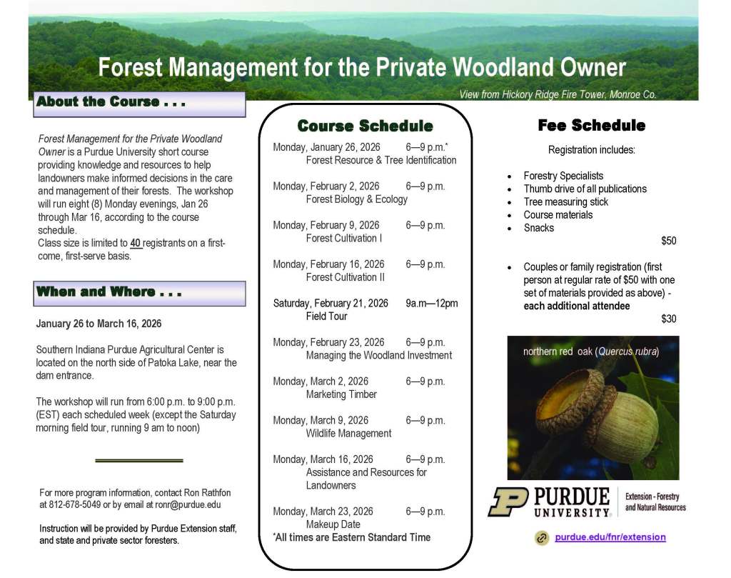 LIVING Purdue offering Forest Management course ByLocal Sources January 19, 2026January 19, 2026 Reading Time: 1 minute Share