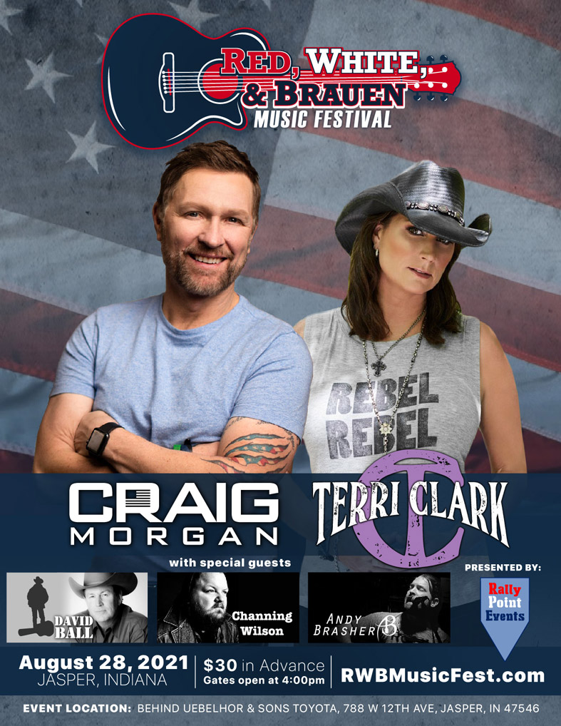 Craig Morgan and Terri Clark will co-headline the concert set to take place at Uebelhor Toyota on 12th Avenue in Jasper, Indiana. Special guests will include David Ball, Channing Wilson, and Andy Brasher.