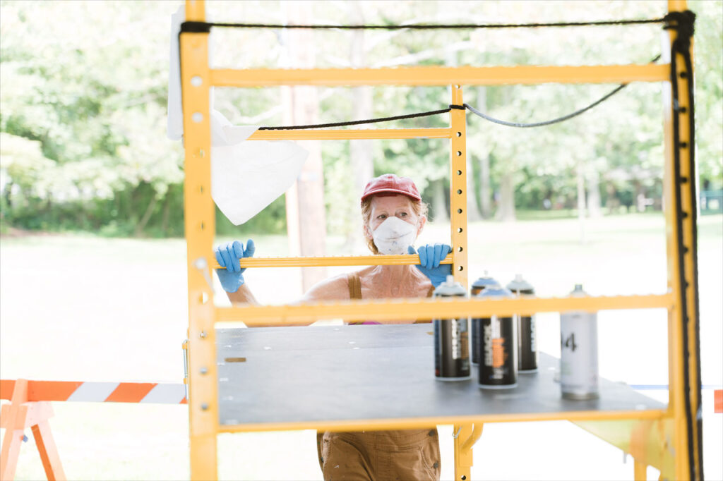Though she has scaffolding to work from, much of the work is done in small steps that require Pommier to constantly be hopping down from the heights to survey it from a larger perspective and make adjustments as she goes.