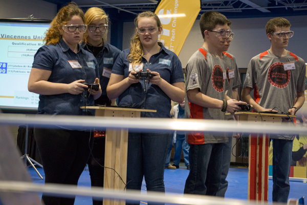 18 student teams filled the Ruxer Gymnasium at Vincennes University Jasper Campus with their accompanying families as they competed in a robot rumble.
