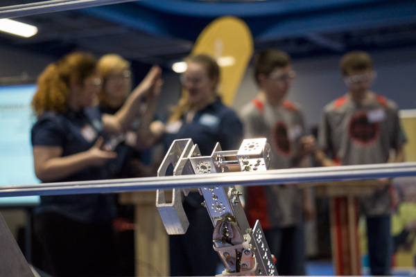 As a First Tech Challenge qualifying tournament, teams from all over the state and one from Ohio converged on the campus to continue to rank in the upcoming tournaments.