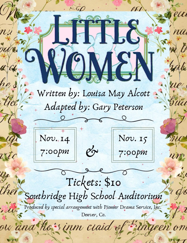 Directed by Shane Denu and primarily produced by theatre students, the production brings Louise May Alcott’s beloved book to life on Friday, Nov. 14, and Saturday, Nov. 15, at 7:00 p.m. both nights.
