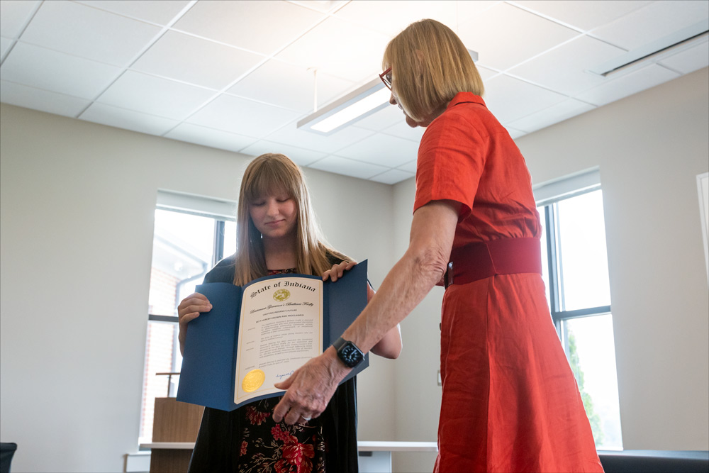 Created in 2019, the Indiana Lieutenant Governor’s Brilliant Firefly is awarded to young Hoosiers who have distinguished themselves by demonstrating outstanding community service, exemplary academic achievement, and exceptional leadership in their communities. It is a way to recognize young Hoosiers who are “lighting Indiana’s future”, according to the Lt. Governor.