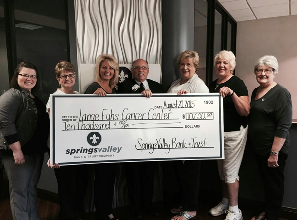 Springs Valley Bank & Trust donates $10,000 to Lange-Fuhs Cancer Center