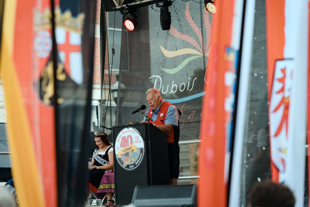 Jasper Mayor Dean Vonderheide and Pfaffenweiler Mayor Lukas Mahler lit the ceremonial lantern together before offering brief remarks to begin the festival celebrating the two cities’ connections.