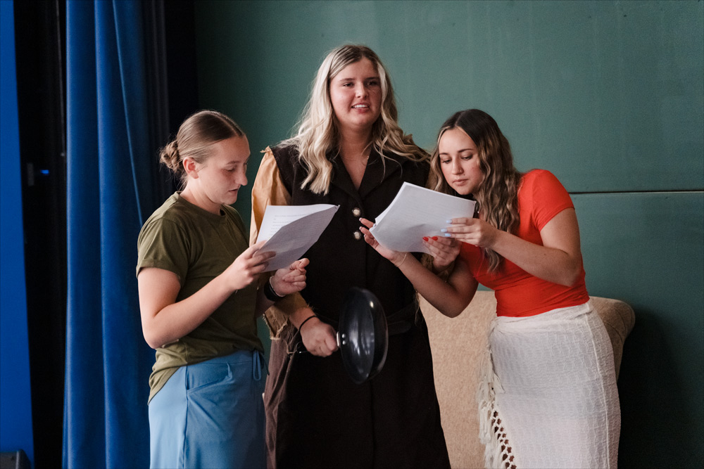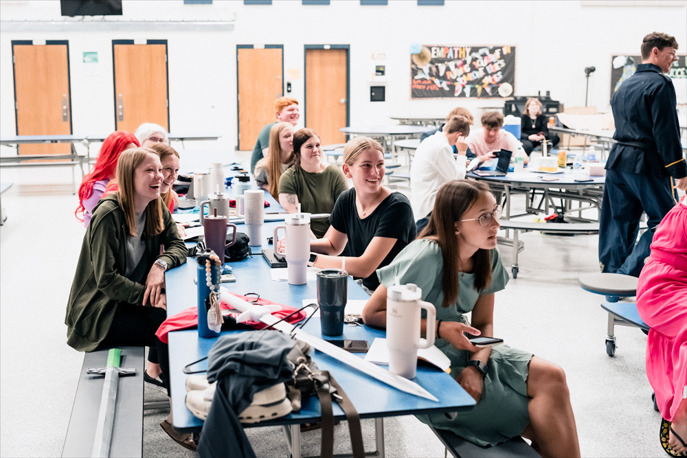 The students taking Speech fill more than 30 performing roles, with the rest of the class filling the roles behind the scenes to bring the production together. Whether designing set pieces, tickets and costumes, constructing the sets, preparing costumes, or 3D printing props like the swords used throughout the play, the entire class brings it all together.