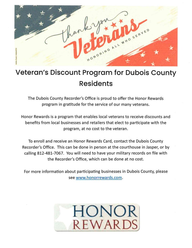 The Dubois County Recorder’s office is starting a new program called the Honor Rewards.