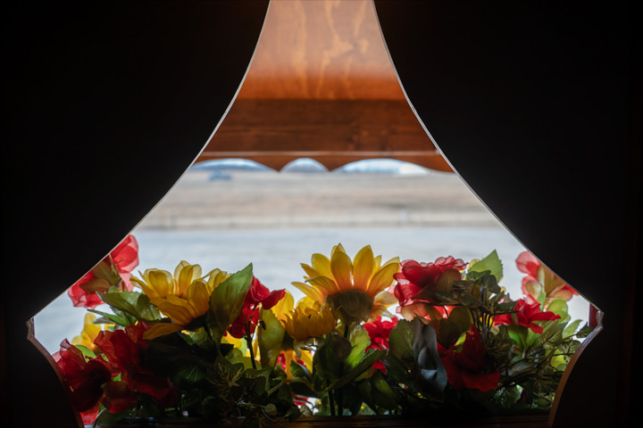The highly polished wooden-sided building has balconies on both sides with small doors to be used by the kinderchor during their performances. The balcony rail is comprised of hand-carved conifers that recall images of the Black Forest in Germany.