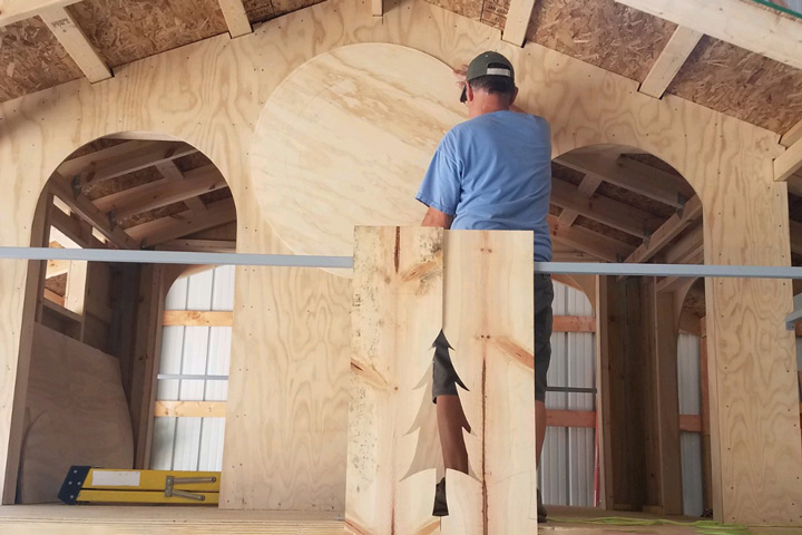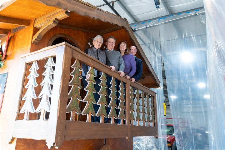 The core group of four — Jim and his wife, Rita and Laura and her husband, Paul — have been working on the glockenspiel for more than two years. Setbacks along the way included building a new house, the addition of some new grandchildren, surgery complications, the death of Laura’s father, and of course, the pandemic. With the many hours in Jim’s shop working together on the finer details, or building the structure on the trailer — at first in a barn donated by Mike Hochgesang and later finished in the garage near Ackerman Oil, the four became close friends over wood shavings and bloody knuckles.