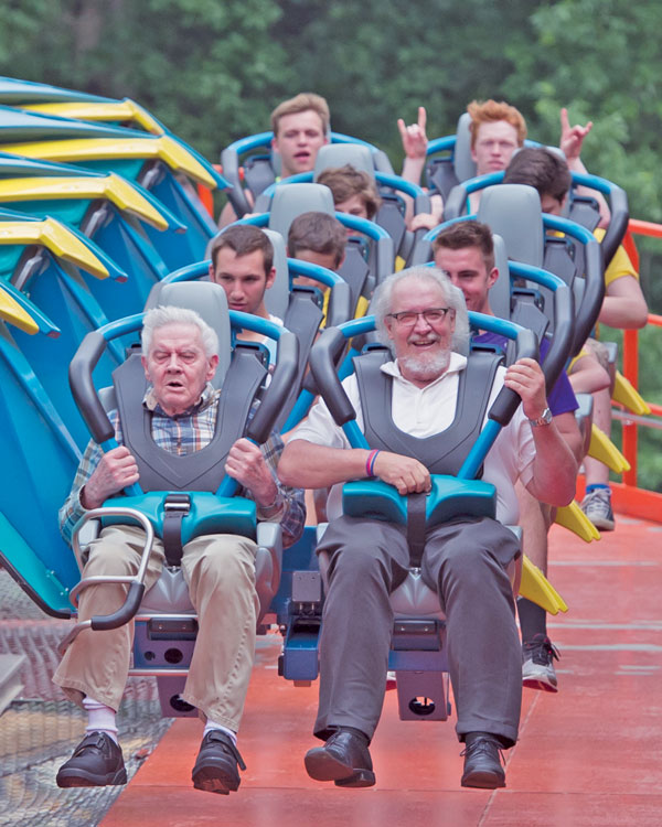 The local buzz reverberating throughout Ferdinand’s Scenic Hills Care Center was that you’d have to be crazy to ride that thing — “That thing” being Holiday World’s new metal winged roller coaster and that sentiment (having to be crazy to ride it and all) was, in fact, all the motivation one brave lone resident needed to step up to the plate.