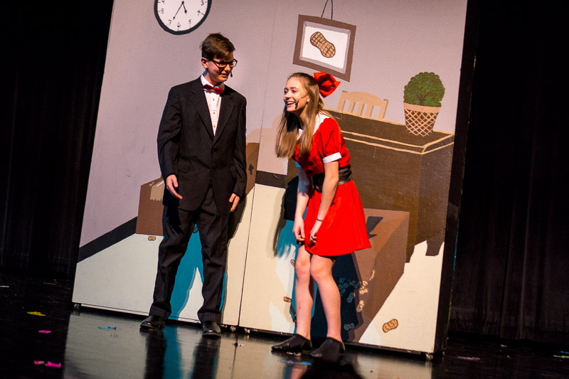 Jasper Middle School eighth-grader Alexis Kleiman portrays Willy Wonka for the school’s production of “Willy Wonka Jr.” Jasper Middle School Performing Arts will present the musical at 7 p.m. Friday and Saturday and 2 p.m. on Sunday. Tickets will be available at the door for $5. <Photos by Matt Crane.>Eighth-grader Hannah Rottet portrayed the blueberry-transformed Violet Beauregaurde during the dress rehearsal for the upcoming Jasper Middle School Performing Arts production of “Willy Wonka Jr.” The show will be put on at 7 p.m. Friday and Saturday and at 2 p.m. on Sunday. Tickets will be available at the door for $5.Jasper Middle School eighth-grader Alexis Kleiman sings during Tuesday’s dress rehearsal for the school’s production of “Willy Wonka Jr.” She is portraying Willy Wonka. Jasper Middle School Performing Arts will present the musical at 7 p.m. Friday and Saturday and 2 p.m. on Sunday at the school’s auditorium. Tickets will be available at the door for $5.Charlie, played by Reggie Matute, coaxes Granny Jo, portrayed by Mya Stiles, to try some of Willy Wonka’s special bubbles in the Jasper Middle School Performing Arts production of “Willy Wonka Jr.” The group will present the musical at 7 p.m. Friday and Saturday and 2 p.m. on Sunday at the school’s auditorium. Tickets will be available at the door for $5.Ty Neighbors and Gabby Goodwin crack up while rehearsing their lines Tuesday. They portray Mr. Salt and his daughter Veruca in the Jasper Middle School Performing Arts production of the musical, “Willy Wonka Jr.” The show opens at 7 p.m. Friday and Saturday and 2 p.m. on Sunday at the school’s auditorium. Tickets will be available at the door for $5.Seventh graders Marissa Killion and Vanessa Mejia portray two of the many Oompa Loompas in the Jasper Middle School Performing Arts production of “Willy Wonka Jr.” The school will present the musical at 7 p.m. Friday and Saturday and 2 p.m. on Sunday at the school’s auditorium. Tickets will be available at the door for $5.Veruca Salt played by Gabby Goodwin ends her scene with a song during Tuesday’s rehearsal of the Jasper Middle School Performing Arts production of “Willy Wonka Jr.” The school will present the musical at 7 p.m. Friday and Saturday and 2 p.m. on Sunday at the school’s auditorium. Tickets will be available at the door for $5.More than 160 students, many of them Oompa Loompas, are set to perform in the Jasper Middle School Performing Arts production of “Willy Wonka Jr.” The school will present the musical at 7 p.m. Friday and Saturday and 2 p.m. on Sunday at the school’s auditorium. Tickets will be available at the door for $5.Jasper Middle School Performing Arts will present “Willy Wonka Jr.” at 7 p.m. Friday and Saturday and 2 p.m. on Sunday at the school’s auditorium. Tickets will be available at the door for $5.